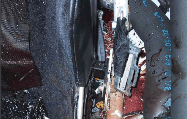 La teoría del cinturón de seguridad estaba fuertemente apoyada por el estado en el quedó su asiento tras el accidente, en especial en el lado derecho, el cual mostraba marcas de roce y un torcimiento hacia dicho lado.