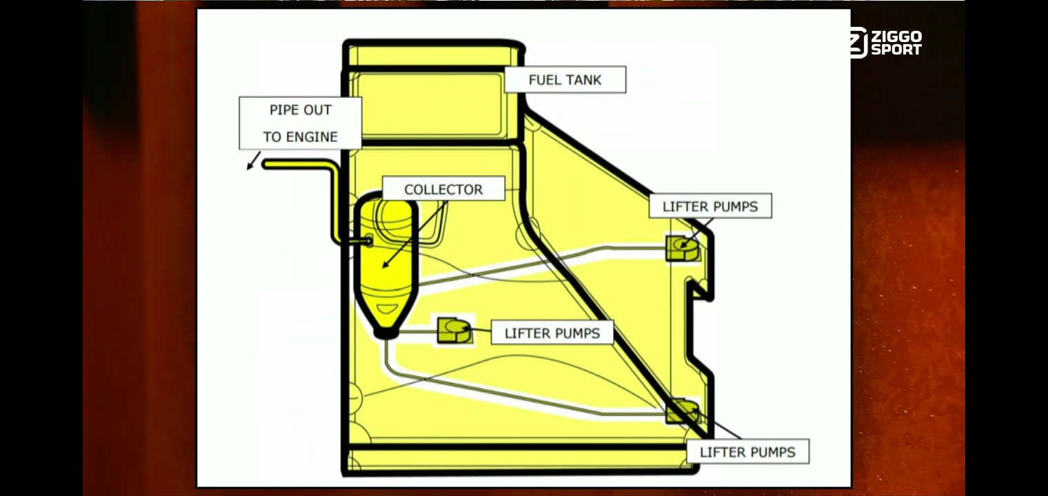 El colector de combustible esta ubicado dentro del tanque y tiene la misma capacidad mencionada por Kravitz, haciendo posible de que la bomba de combustible pueda proveer al motor para hacer la combustión con el aire y producir la potencia.