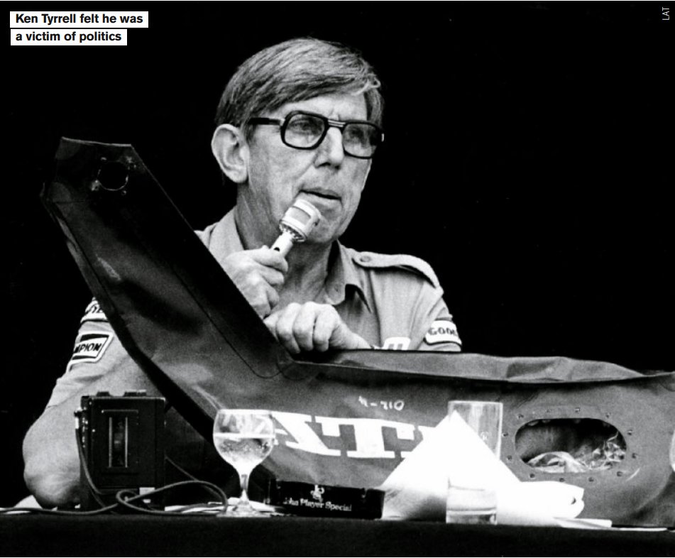 La cuestión estaba en el hecho de que si Tyrrell había corrido las primeras ocho carreras de la temporada con un auto que estaba por debajo del peso legal. El propio Ken Tyrrell admitió el uso del lastre, pero no logrando demostrar que sus autos estuvieron siempre dentro del peso legal.