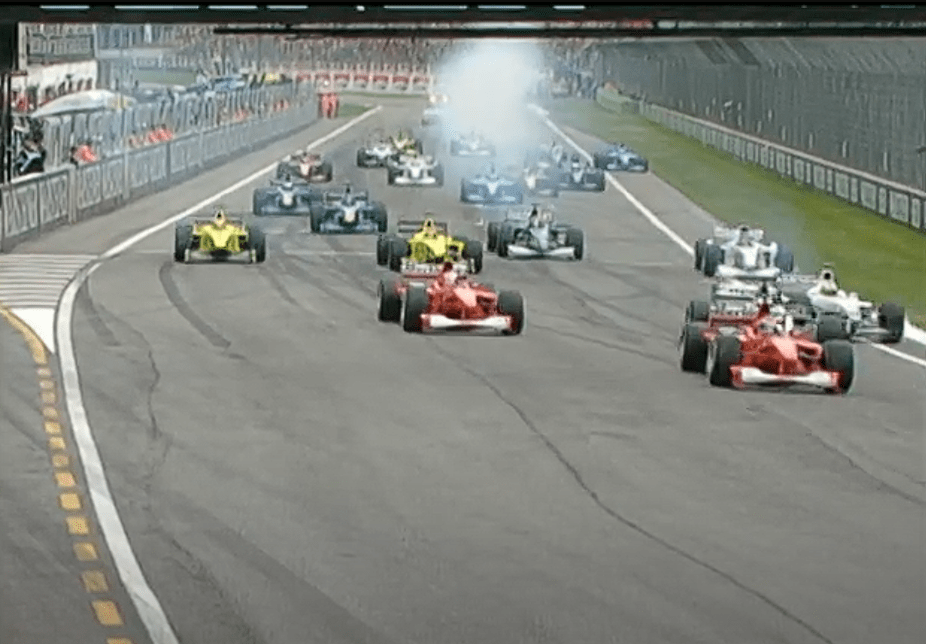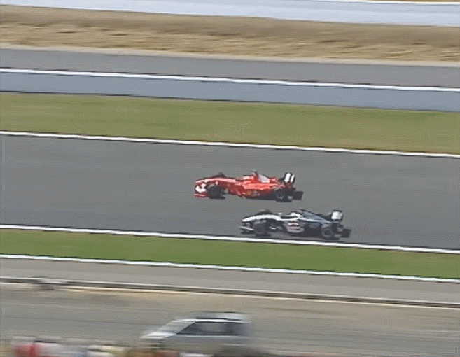 Flash Forward al 2000 y nuevamente tuvieron otro encontronazo en la largada del GP de San Marino cuando Schumacher, en un preámbulo de lo que iba a ser esa largada en Magny Cours para bloquear a Coulthard.