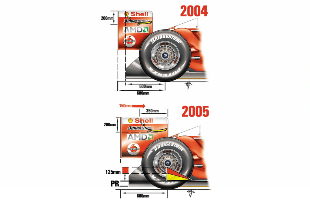Uno de los cambios reglamentarios más recordados de esa temporada estaba en el apartado de los neumáticos, en un intento de frenar el dominio de Ferrari, la FIA instauró una regla de que el set de neumáticos debía durar la clasificación y la distancia completa de la carrera.
