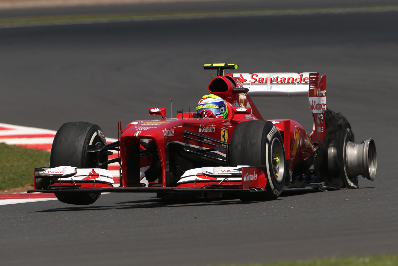 Dos vueltas después, su compañero de equipo Felipe Massa sufrió un brusco pinchazo en el neumático trasero izquierdo a la salida de la curva Aintree. En un lapso de dos vueltas, tres pinchazos, dos de ellos de manera brusca.