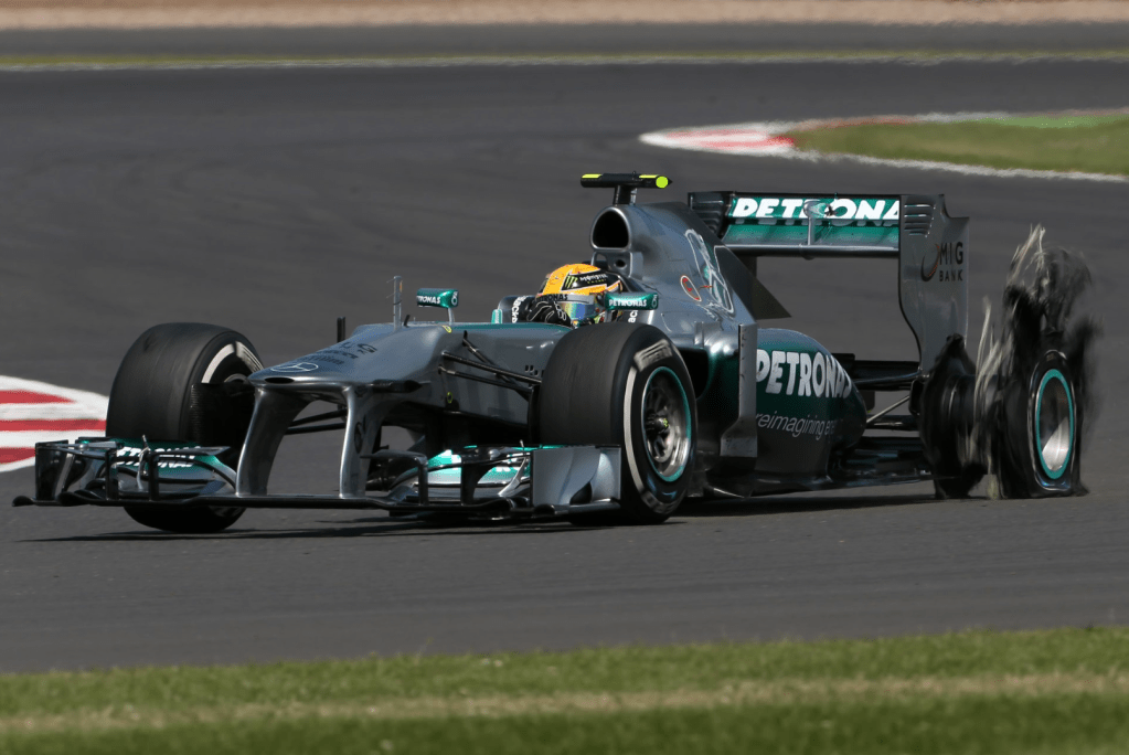 Flash Forward a 2013, Pirelli está en su tercer año como proveedor en la Fórmula 1 y todos sus compuestos eran más suaves en comparación a los del 2012 con el propósito que llegasen a su temperatura ideal más rápido y conseguir tiempos de vuelta 0.5 décimas de segundo más veloces en comparación al año anterior. Sin embargo, el gran problema de la nueva especificación era que se degradaban más rápido de lo normal, llevando a que los equipos realizarán por carrera hasta cuatro paradas en pits.
