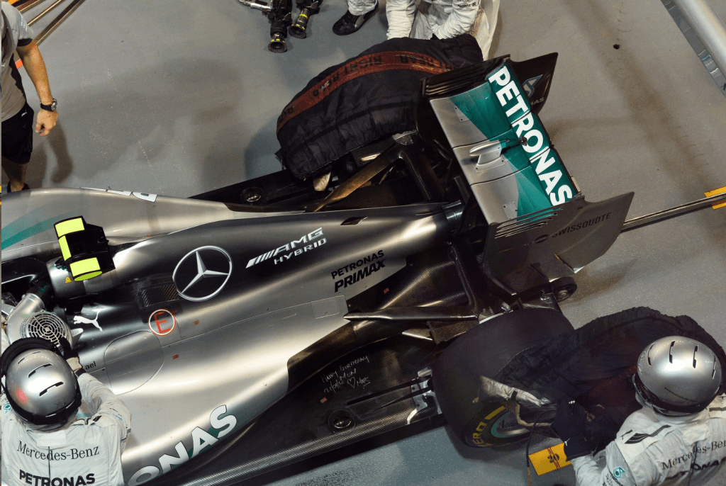 A diferencia de sus demás rivales, Mercedes llevaba décadas sin hacer un motor turbo por lo que tuvieron que recurrir a los ingenieros de Daimler, quienes tenían experiencia en trabajar con turbos, pero para su línea de camiones diésel. La otra cara de la moneda estaba en la vasta experiencia de los alemanes con los sistemas KERS que databa del 2009, año de su introducción a Fórmula 1 con Lewis Hamilton ganando el GP de Hungría de ese año, siendo el primer piloto en la historia de la categoría en ganar con un sistema híbrido.