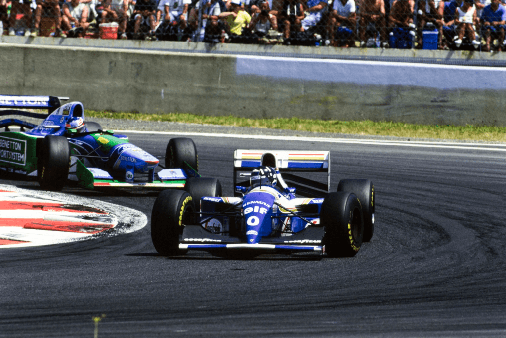 Magny Cours es un circuito poco amigable para los sobrepasos por lo que la clave estaba en los pits y en otra lucha estratégica con autos haciendo dos o tres paradas. En este caso fue Schumacher con tres y Hill con dos, ambos corriendo con diferentes cargas de combustible, razón que explicaría de que porque estuvieron tan cerca en el primer stint.