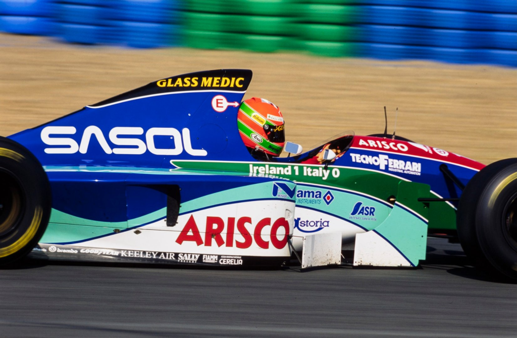 La temporada de F1 estaba ocurriendo en medio del mundial de Estados Unidos 1994 y Jordan celebró la victoria de Irlanda ante Italia en Nueva Jersey con un simple mensaje en sus autos: «Irlanda 1 Italia 0».
