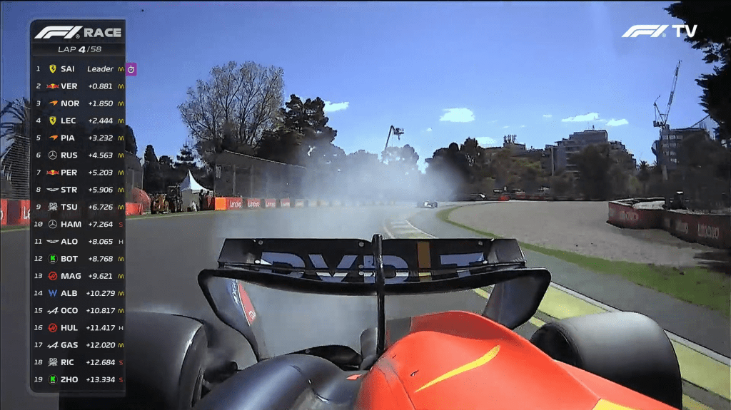 El único abandono de la temporada para Verstappen ocurrió en Australia cuando un fallo en uno de los frenos traseros de su RB20 se prendió fuego luego que un caliper se quedase pegado en las primeras vuelta de carrera.