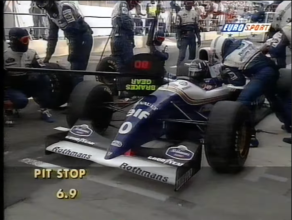 El stint inicial de Schumacher fue con poco combustible, entrando por primera vez en la vuelta 15, mientras que Hill entró en la vuelta 18 y mostrando que los contendientes al campeonato estaban con estrategias diferentes: Hill dos paradas vs las tres de Schumacher.