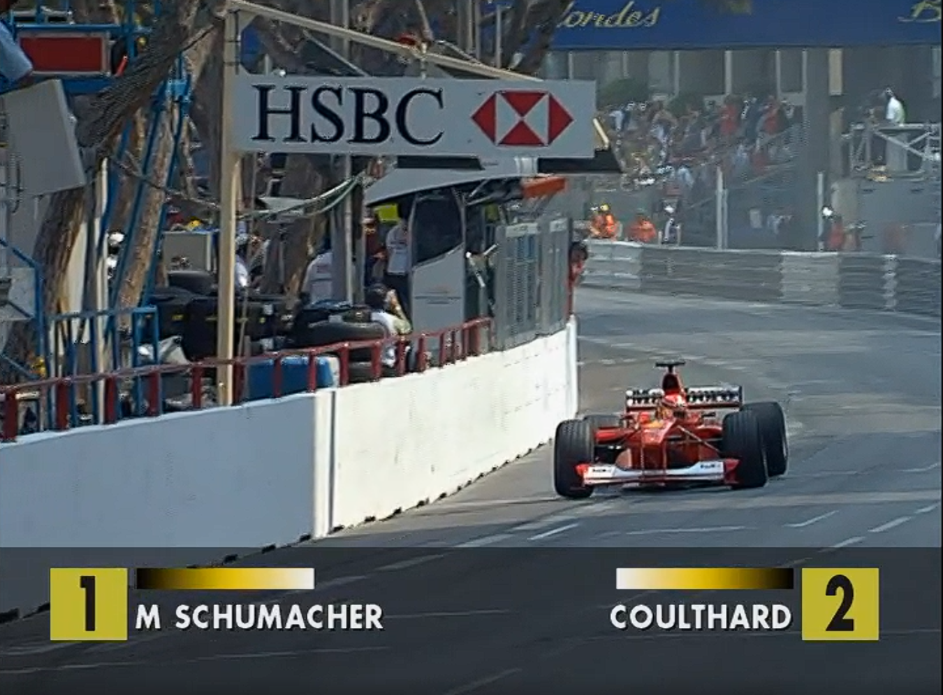 En el regreso de la Fórmula 1 a Indianápolis y a los Estados Unidos marcó uno de los momentos claves de la categoría en el Siglo XXI como también en el campeonato con Hakkinen abandonando debido a un fallo mecánico en su McLaren ante de haber llegado al punto medio de la carrera.