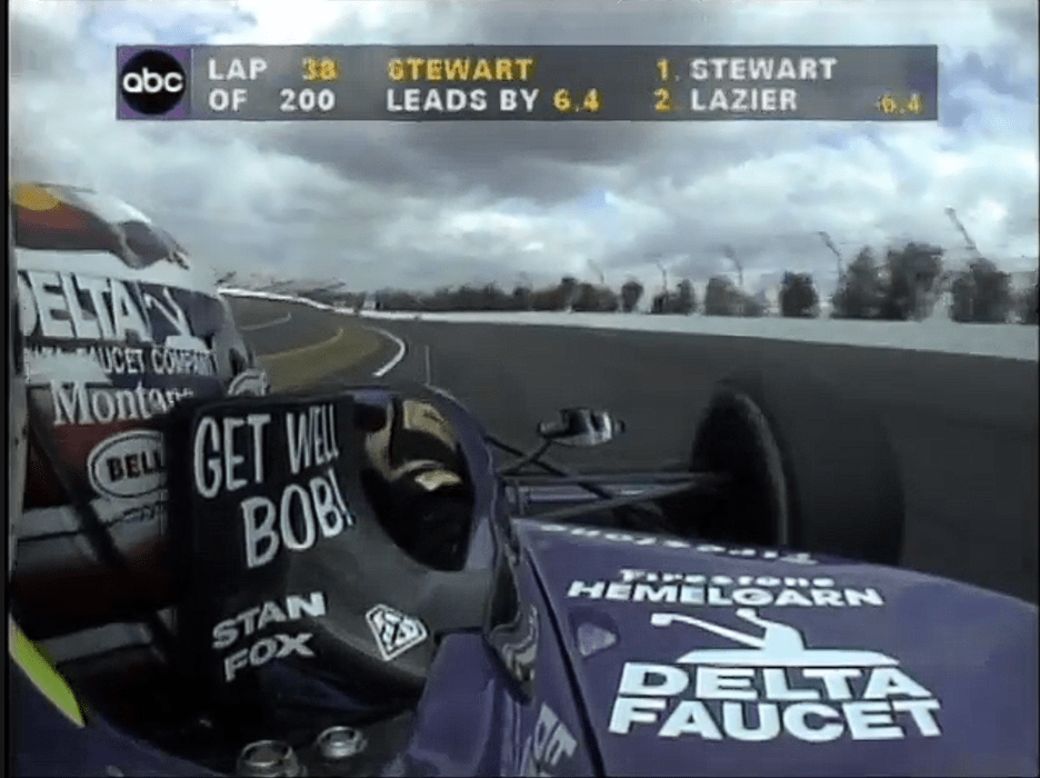 A menos de 20 vueltas del final, Buzz Calkins se mantenía como líder de la carrera. Roberto Guerrero rodaba como primer rezagado, mientras que detrás aparecía Tony Stewart con un auto claramente más veloz, aunque sin la experiencia necesaria. En ese contexto, Stewart debía mantener las emociones bajo control y ejecutar una estrategia inteligente en pits si quería capitalizar su ventaja en ritmo.