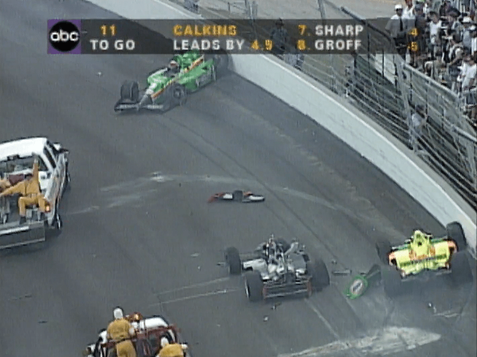 La última bandera amarilla de la carrera apareció en la vuelta 190, cuando Scott Sharp y Eddie Cheever colisionaron en la curva uno. La rápida intervención de los equipos de rescate sorprendió a Tony Stewart, quien se vio obligado a tomar una acción evasiva inmediata: rozó el muro y logró pasar entre los autos dañados y los vehículos de rescate que recién comenzaban a ingresar a la zona del accidente.