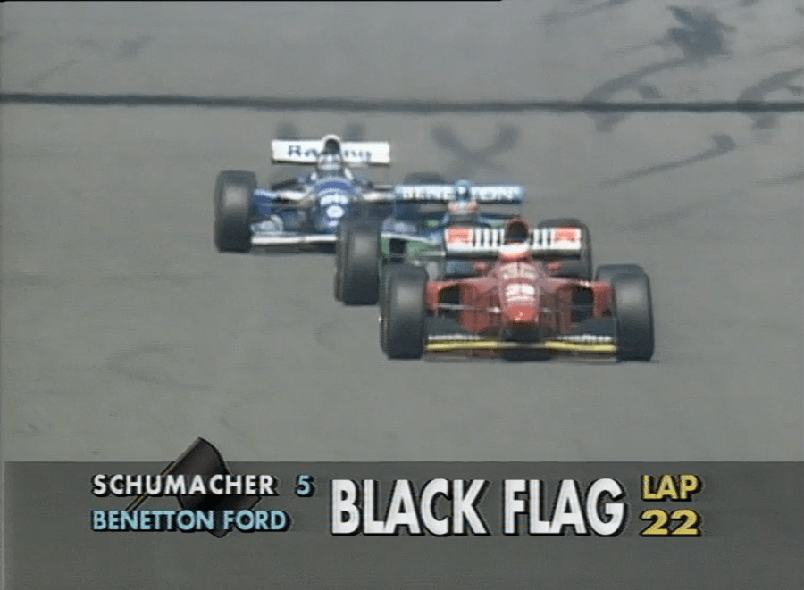 «Habían pasado 30 minutos desde el inicio de la carrera y el equipo recibe una copia del documento de la decisión N°2 tomada por los comisarios, la cual llegó más tarde de lo que indicaba el reglamento. Sin embargo, decía que una penalización de tiempo sería aplicada a Michael Schumacher por una infracción en la vuelta de formación y eso fue todo». – Steve Matchett, mecánico del equipo Benetton (1991 – 1998) en el programa F1 Decade de SPEED Channel