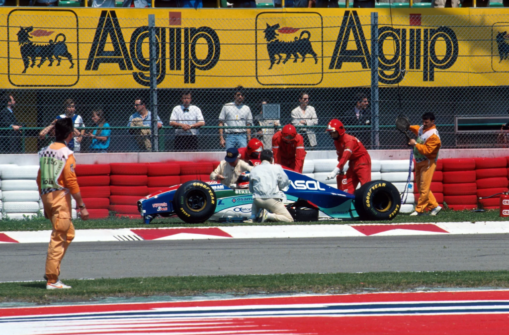 A finales de marzo, Jean Alesi se estrelló con las barreras durante una jornada de pruebas en Mugello mientras probaba algunas actualizaciones en su Ferrari 412T1 que lastimó varias vertebras de su espalda, quedando fuera, en un inicio por dos semanas, pero que acabó con el francés perdiéndose las carreras en Aida y San Marino. Nicola Larino lo reemplazó.