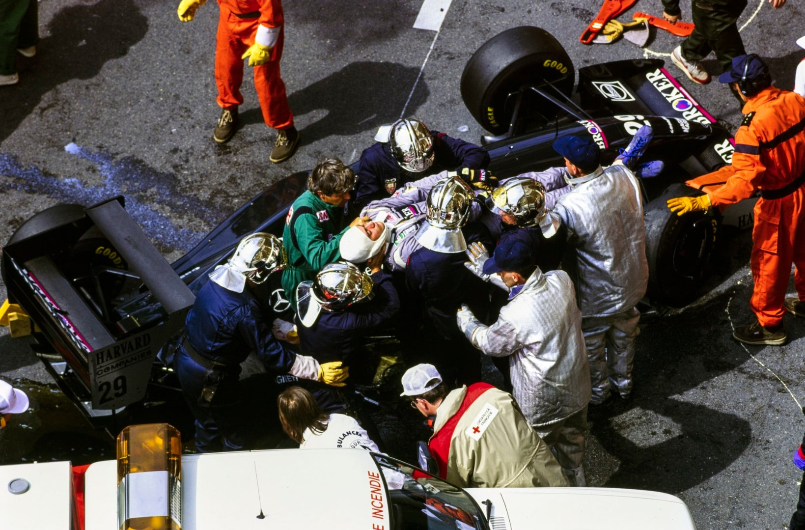 Dos semanas de la tragedia de Imola, la F1 estaba de regreso con el GP de Mónaco con Bernie Ecclestone rayando la cancha sobre el show que debía seguir a pesar de todo caos durante una reunión con los directores de equipo porque para él «nadie es más grande que la Fórmula 1».